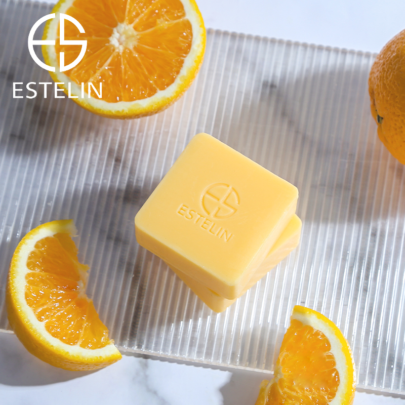 - Packaging: Elegant yellow soap bar with embossed ESTELIN logo